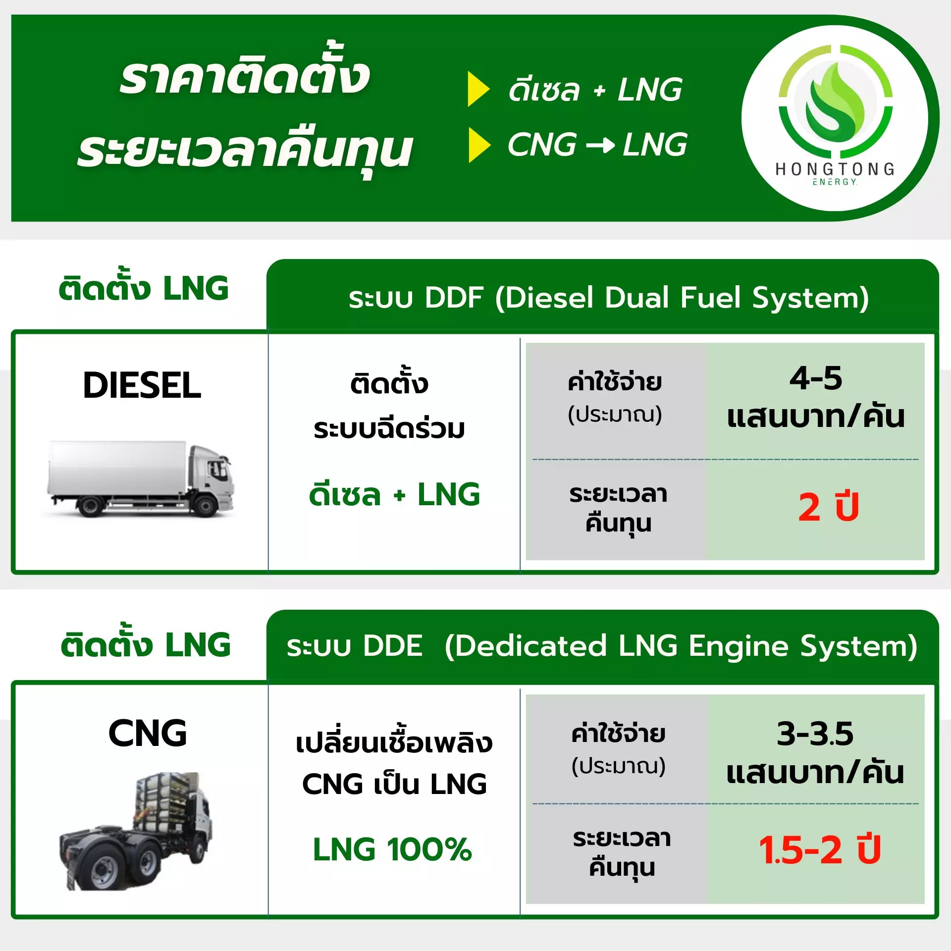 2.) ระบบฉีดร่วม DDF (Diesel Dual Fuel) ดีเซล + LNG 👉 ค่าใช้จ่ายประมาณ 4-5 แสนบาท